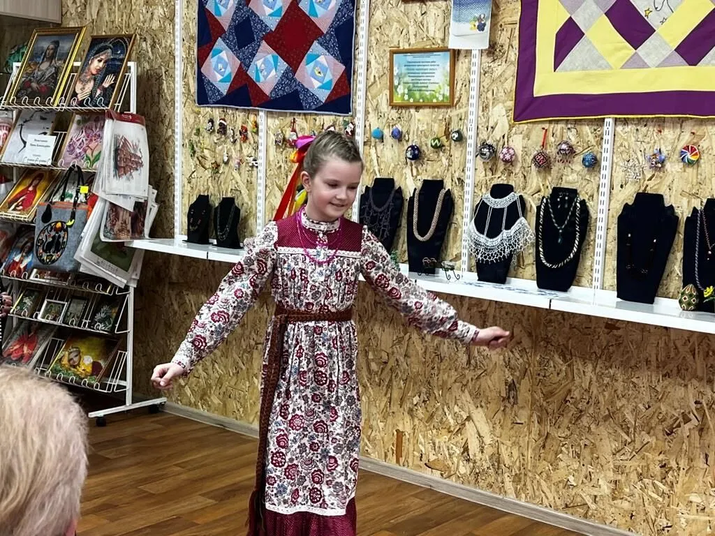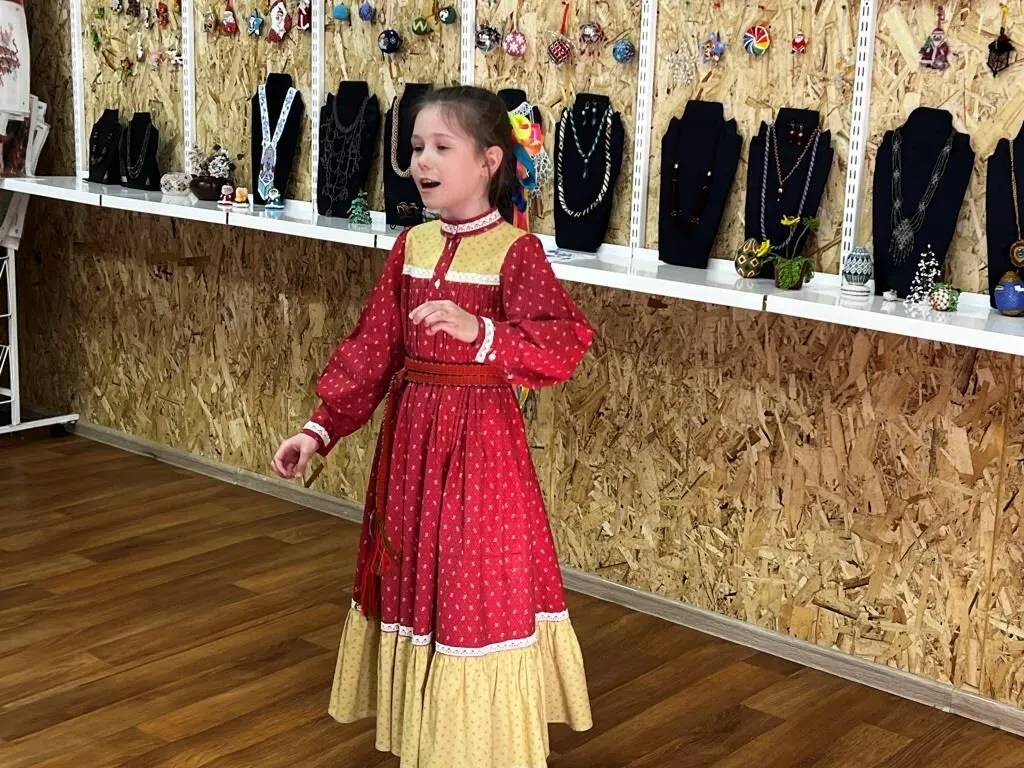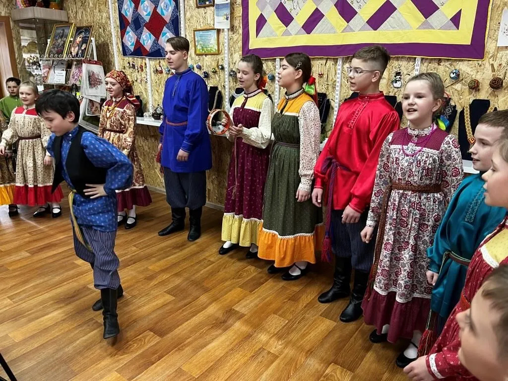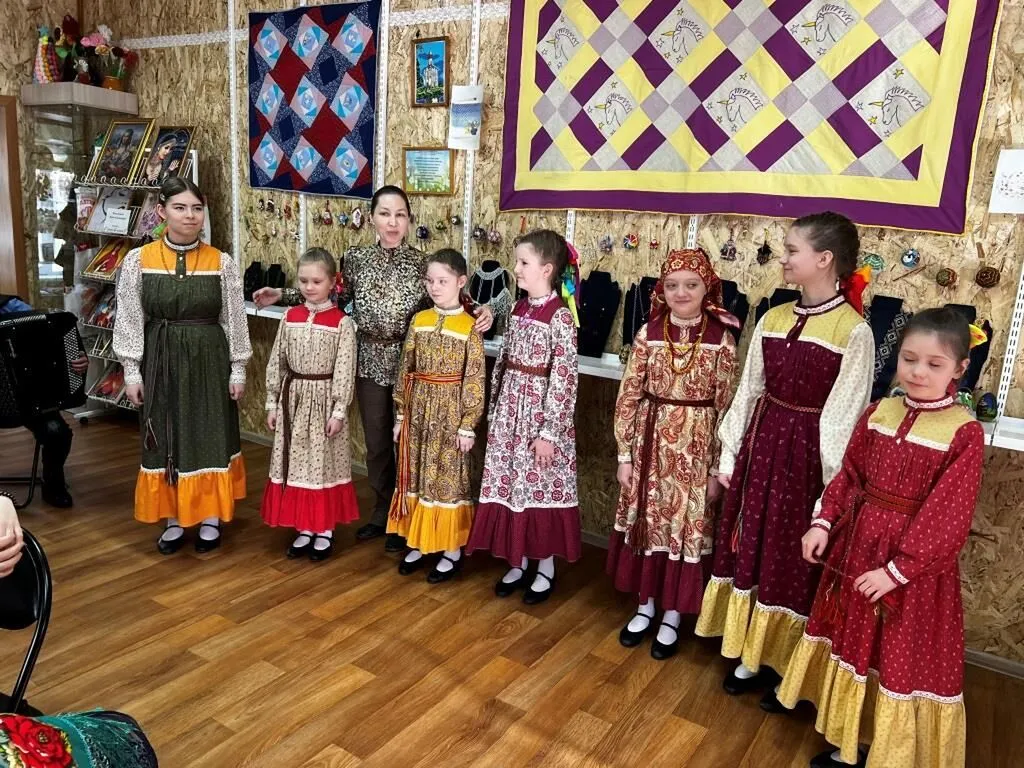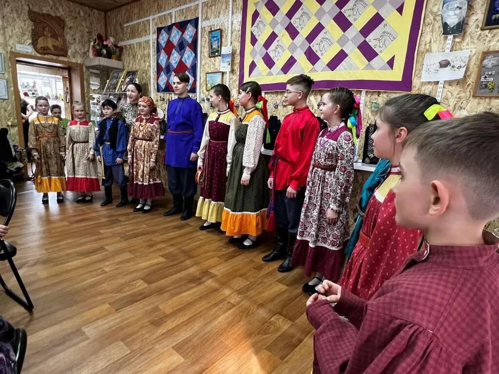 Выступление фольклорного ансамбля «Дуняша» (Детская школа искусств им. А.В. Кузакова г. Киренска). Юные артисты подарили всем незабываемые эмоции — казалось, сами стены музея ожили, вспомнив старинные пасхальные гулянья.