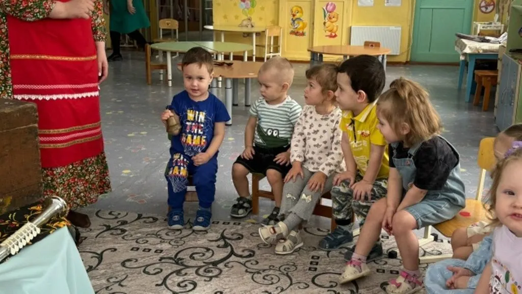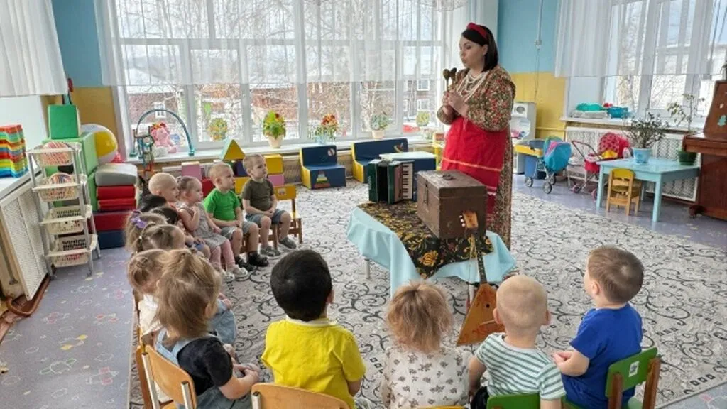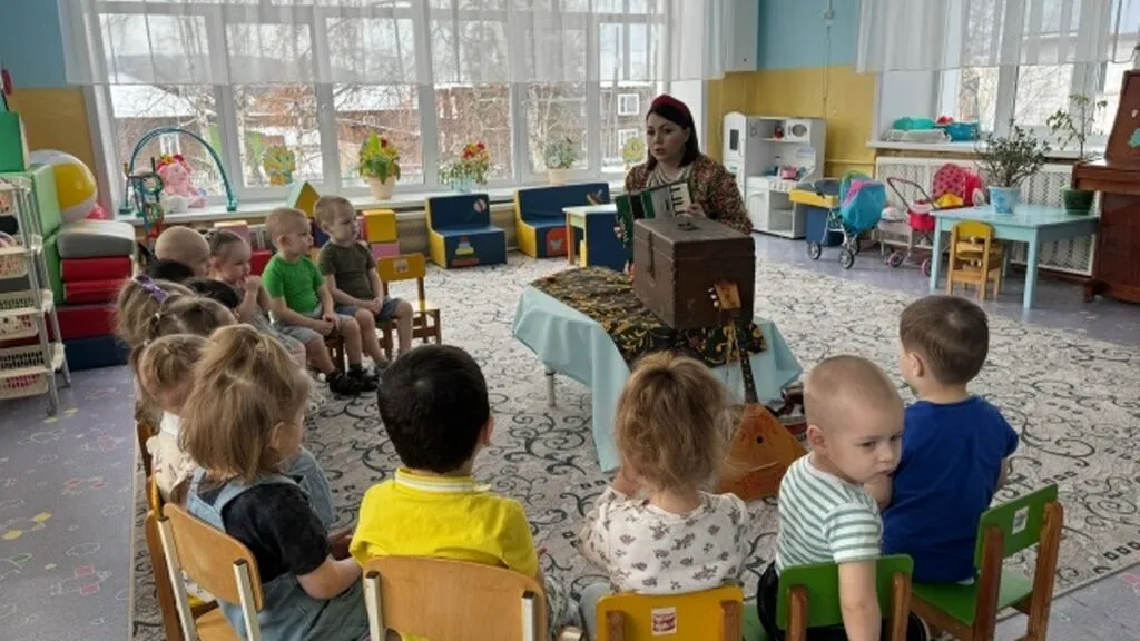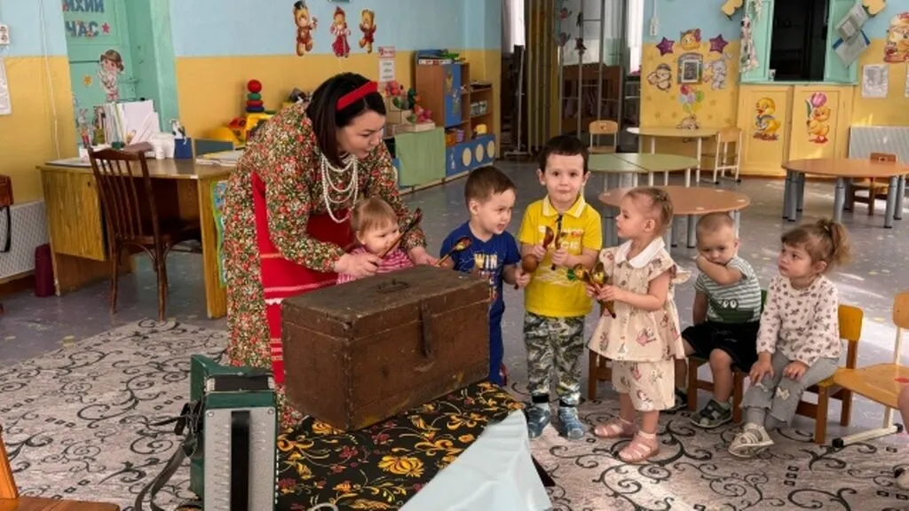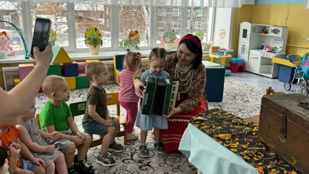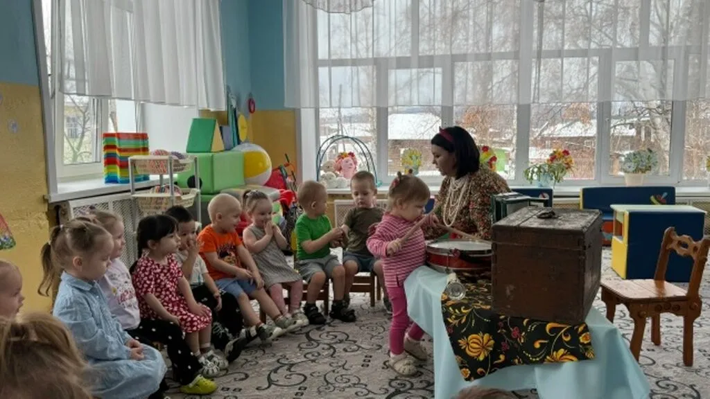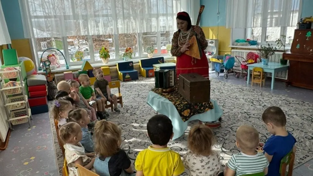 Ведущая открыла для детей удивительный мир народных инструментов: деревянные ложки, барабан, гармошка, балалайка, бубен и многое другое. Ребята не только услышали, как звучит каждый инструмент, но и смогли подержать их в руках и даже попробовать сыграть!